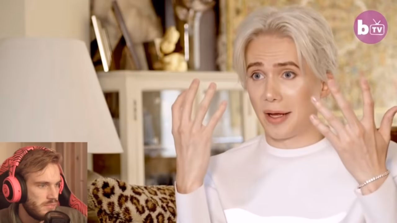 Pewdiepie 觀看 Oli London 的採訪影片