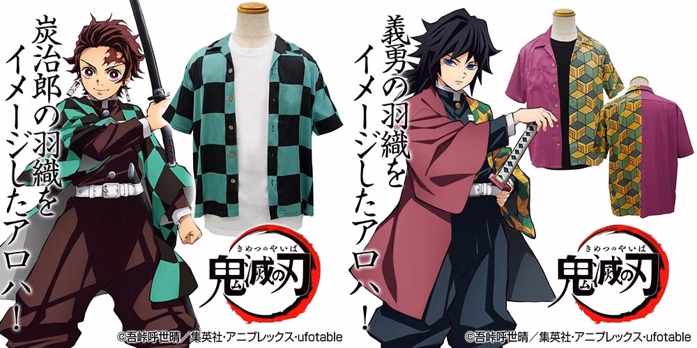 Cospa 將炭治郎以綠色、黑色方格交叉排列的市松紋羽織,還有富岡義勇穿著的半半羽織分別製成短袖襯衫,以速乾性材質製成,相當適合即將到來的夏天。