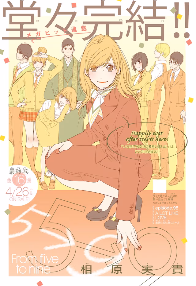 由相原實貴創作的淑女漫畫《朝 5 晚 9》(5 時から 9 時まで)於今(24)日的週刊 Cheese! 結束 10 年以來的連載。