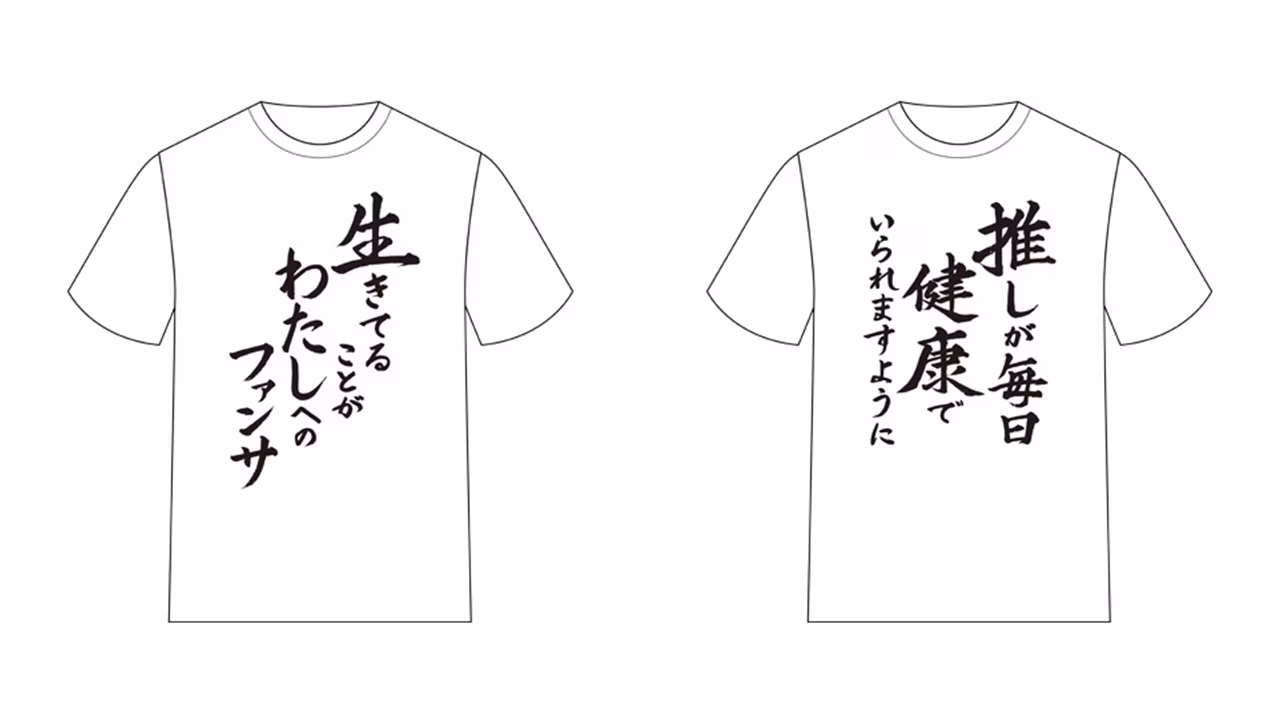 由漫畫家平尾アウリ原作的《神推偶像登上武道館我就死而無憾》推出名言 T 恤新系列「祈願我的推每天身體健康」、「偶像好好活著就是最好的粉絲福利」,即日起在 ACOS 商店開放預訂,4 月16 日截止。
