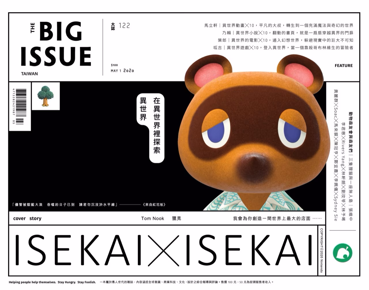 貍克成為雜誌封面人物!與無家者、社會弱勢族群合作的大誌雜誌(The Big Issue)下期以《集合啦!動物森友會》(Animal Crossing New Horizons;ACNH)中的貍克作為封面人物,同時內文也將談及這股動森熱潮。