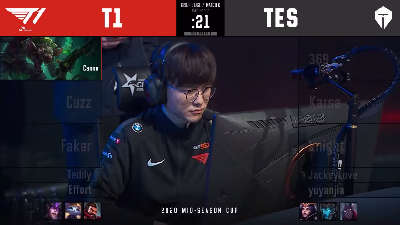 事情發生在昨日季中盃第六局由 T1 對上 TES 的比賽中,在雙方首輪禁用結束後,T1 Canna 作為首選先是亮出圖奇,大約六秒後改選出特朗德並鎖定。雖然比賽結果由 TES 拿下勝利,並順利淘汰掉 T1,但依舊無法阻止輿論發酵。