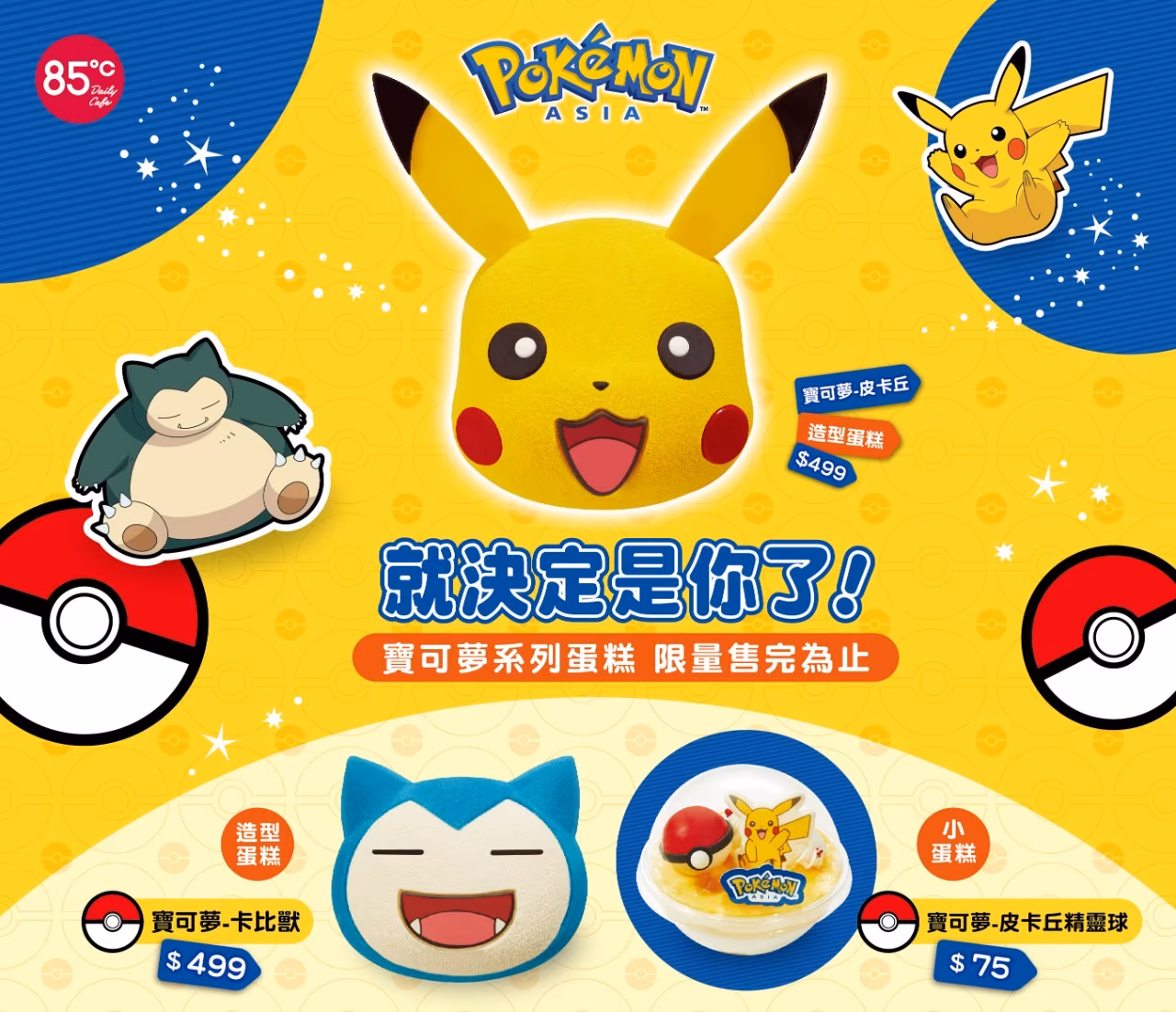 寶可夢造型蛋糕自 11 日起於 85℃ 全台門市限量販售,喜歡寶可夢的粉絲別錯過。