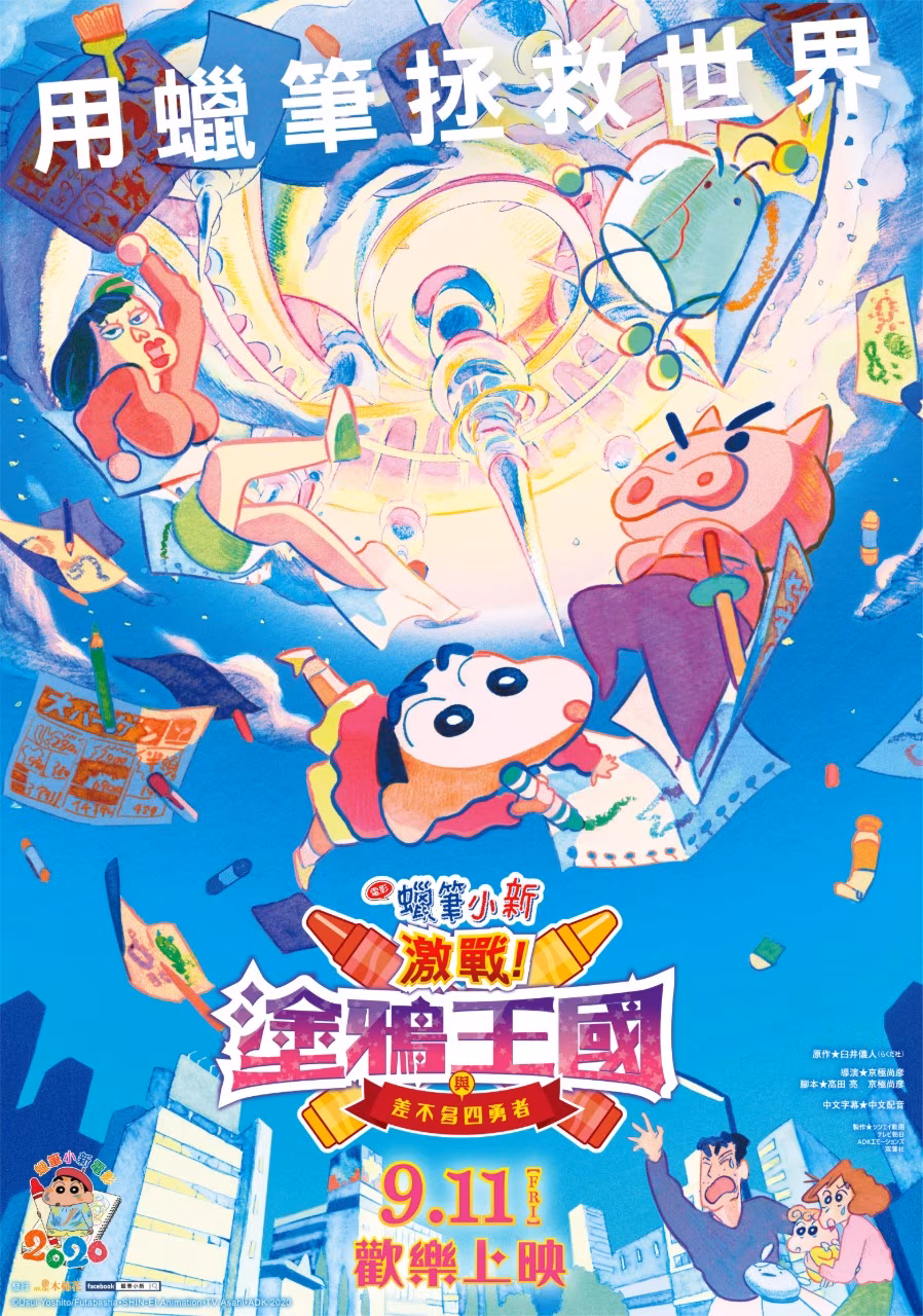 最強幼稚園生野原新之助要來啦!《蠟筆小新》原作漫畫 30 周年劇場版《蠟筆小新 激戰!塗鴉王國與差不多四勇士》將於 9 月 11 日於台灣戲院與日本同步上映。