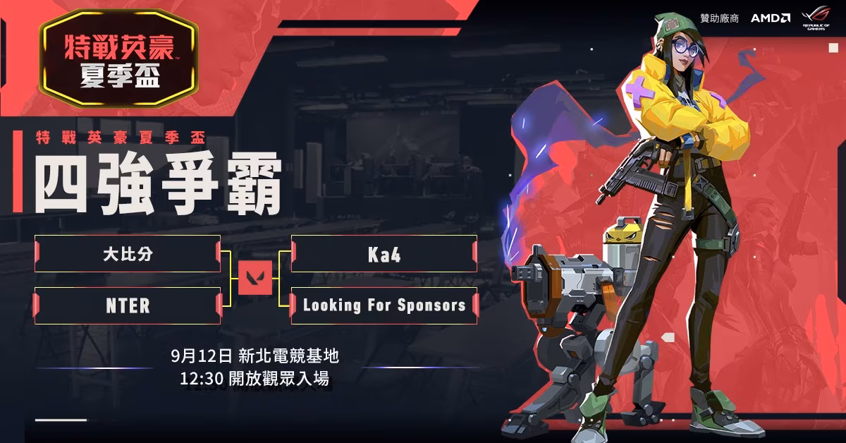 由台灣大哥大主辦《VALORANT特戰英豪》第一屆夏季盃比賽,各路射擊高手雲集,經歷激烈廝殺後四強出爐,最終決賽將於 9 月 12 日在新北電競基地登場,並在今日釋出投票活動,邀請玩家為支持的隊伍投票!