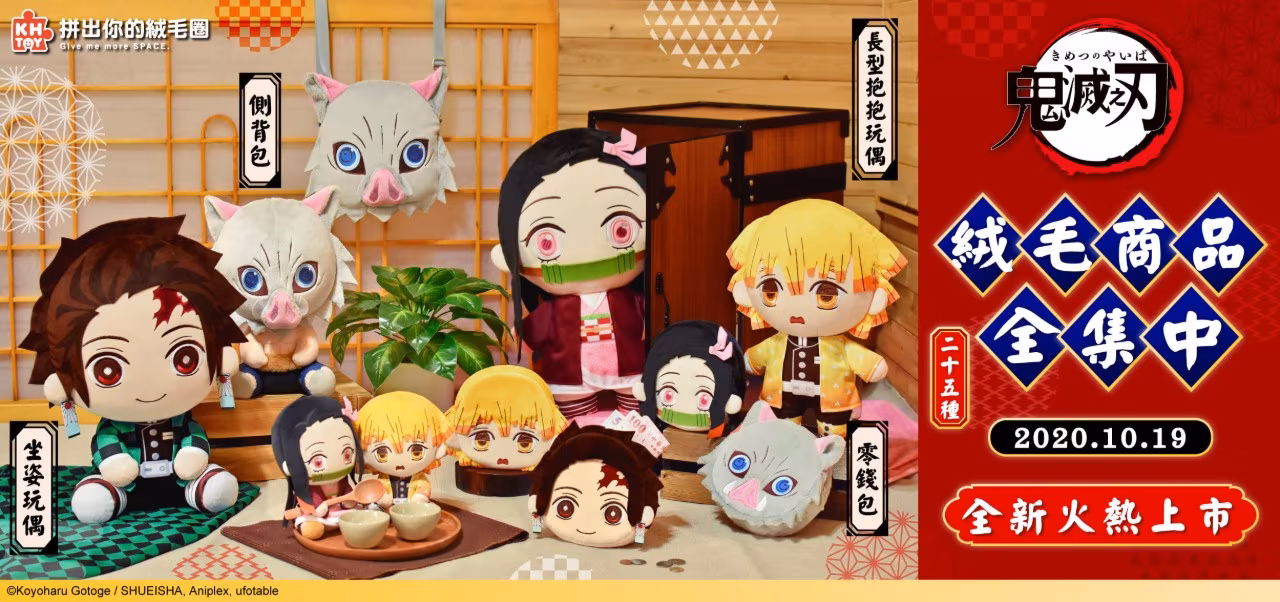 台灣廠商 KHtoy 推出《鬼滅之刃》在台獨家限定版娃娃,取得全台唯一鬼滅之刃絨毛周邊「正版授權」,限量推出玩偶還有零錢包和側背包等必收藏絨毛商品!