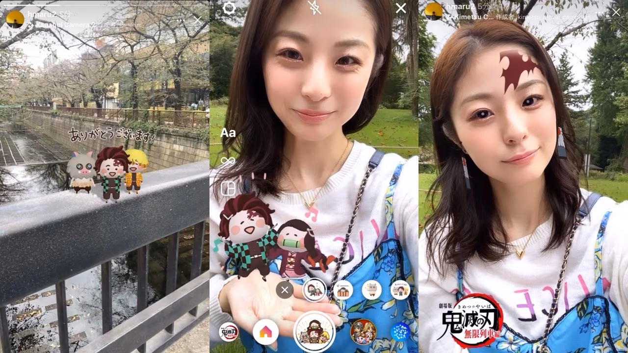 卡娜赫拉老師跟《鬼滅之刃》的合作又有新進展啦!趁著《鬼滅之刃劇場版》上映,日本 Instagram 與《鬼滅之刃》合作,推出幾款 AR 相機,同時也有可化身為角色的自拍濾鏡!