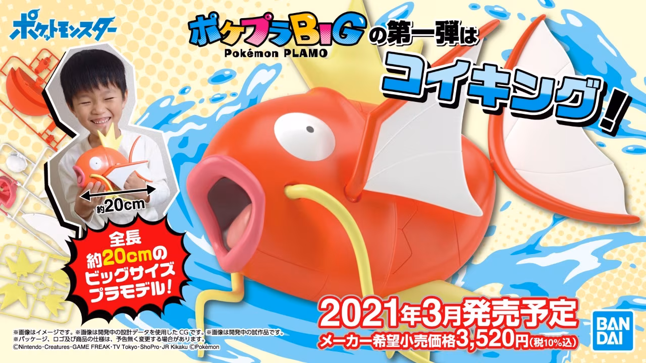 BANDAI SPIRITS 模型玩具事業部公開 Pokemon Plamo 系列「ポケモンプラモコレクション BIG」,第一彈推出足有 20 公分大的鯉魚王模型,附有可替換零件,可重現跳躍的鯉魚王姿態!