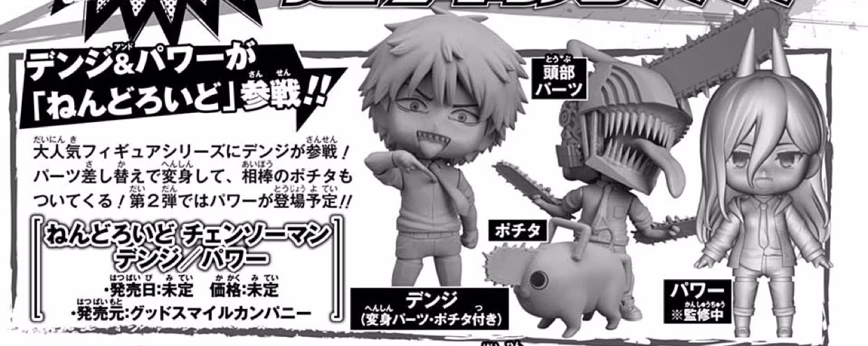 伴隨本次一部完結以及動畫化消息,電次(デンジ)以及帕瓦(パワー)黏土人原型同步公開,其中電次確定將包含變身部件,當然還有惡魔波奇塔相伴左右;而帕瓦目前僅公開建模圖。
