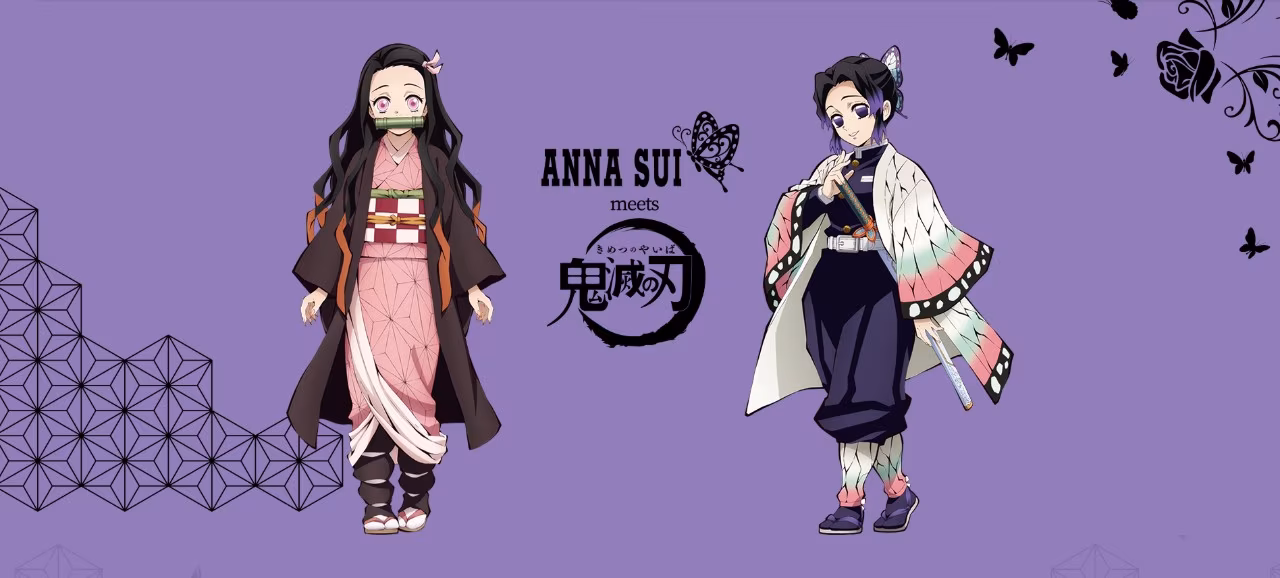 《鬼滅之刃》與時尚品牌 ANNA SUI 展開聯名合作,以 ANNA SUI 著名的蝴蝶設計結合蟲柱胡蝶忍、禰豆子的代表圖樣,對兩方的粉絲來說都是相當值得收藏的聯名!
