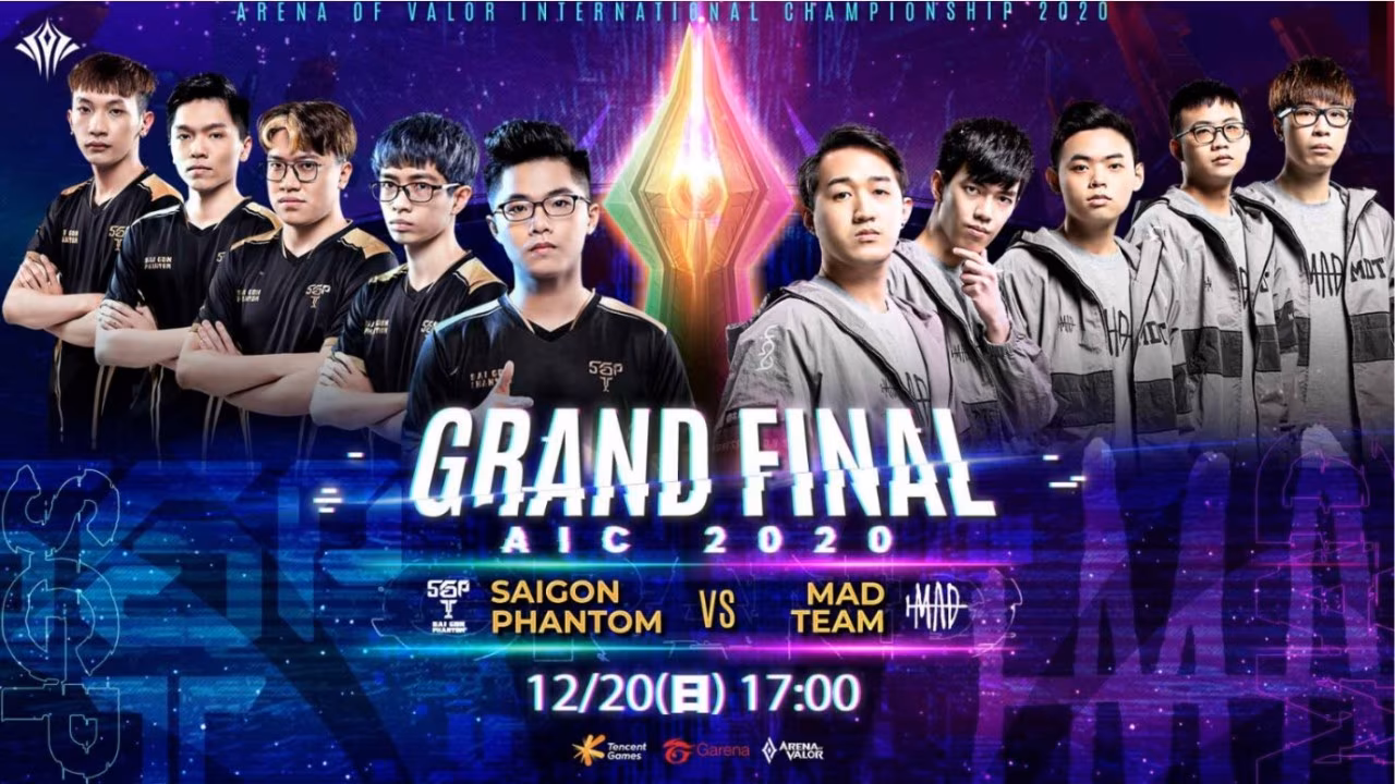 《Garena傳說對決》AIC 總決賽將於 12 月 20 日下午五點整開打,本次晉級總決賽的隊伍皆為賽區第一種子,包括 GCS 賽區的 MAD Team (MAD)以及越南 AOG 賽區的 Saigon Phantom (SGP),請 GCS 賽區的玩家一同鎖定轉播為 MAD 加油!