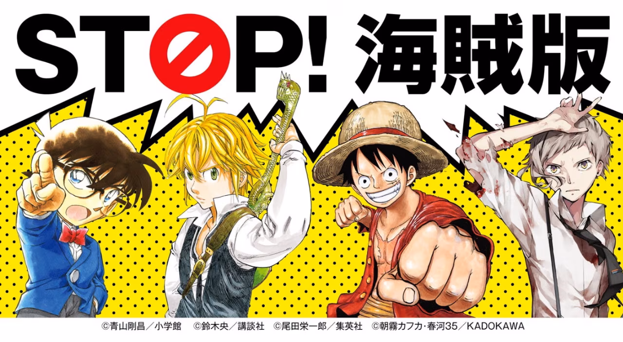 眾所皆知,盜版漫畫一直是出版社的痛,身為日本漫畫領頭之一的集英社也一直是盜版漫畫最大的受害者。集英社一向以來對盜版毫不寬貸,一直以來致力於強力根除盜版。身為巨作的《航海王》更是多次擔任反盜版的宣傳主軸。