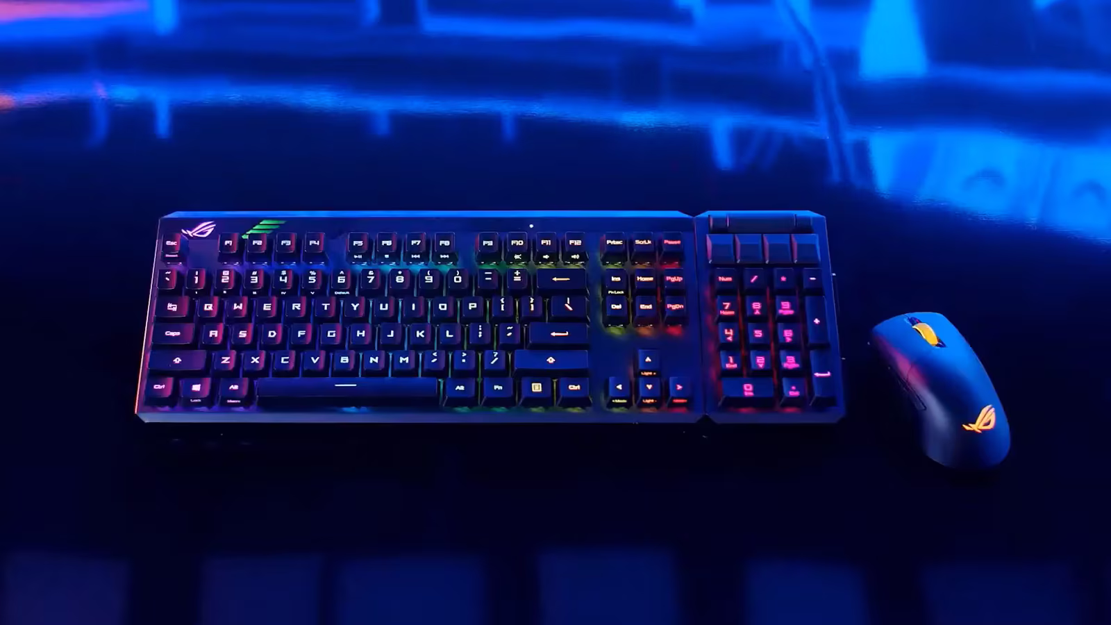 除了筆電和螢幕,華碩 ROG 於 CES 2021 還發表了採用光學鍵軸的 Claymore II 電競鍵盤與 Gladius III Wireless 電競滑鼠。