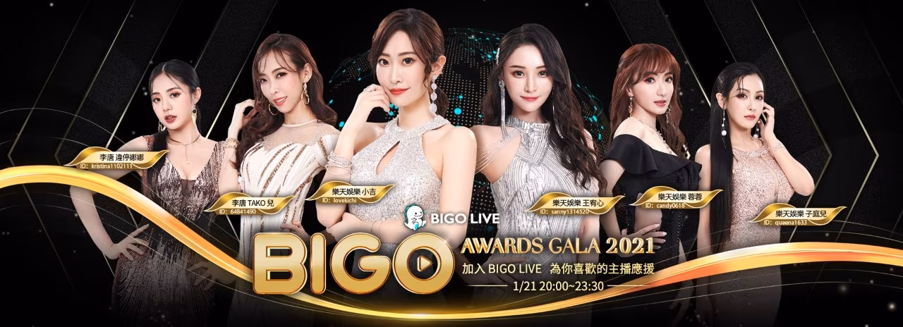 2021年 1 月 21 日晚上 Bigo Live 將於線上舉辦全球盛典 Bigo Awards Gala 2021 頒獎晚會,並在 Bigo Live官方直播頻道同步轉播,想知道這次共有哪些直播主獲獎嗎?歡迎粉絲們準時前往收看喔!