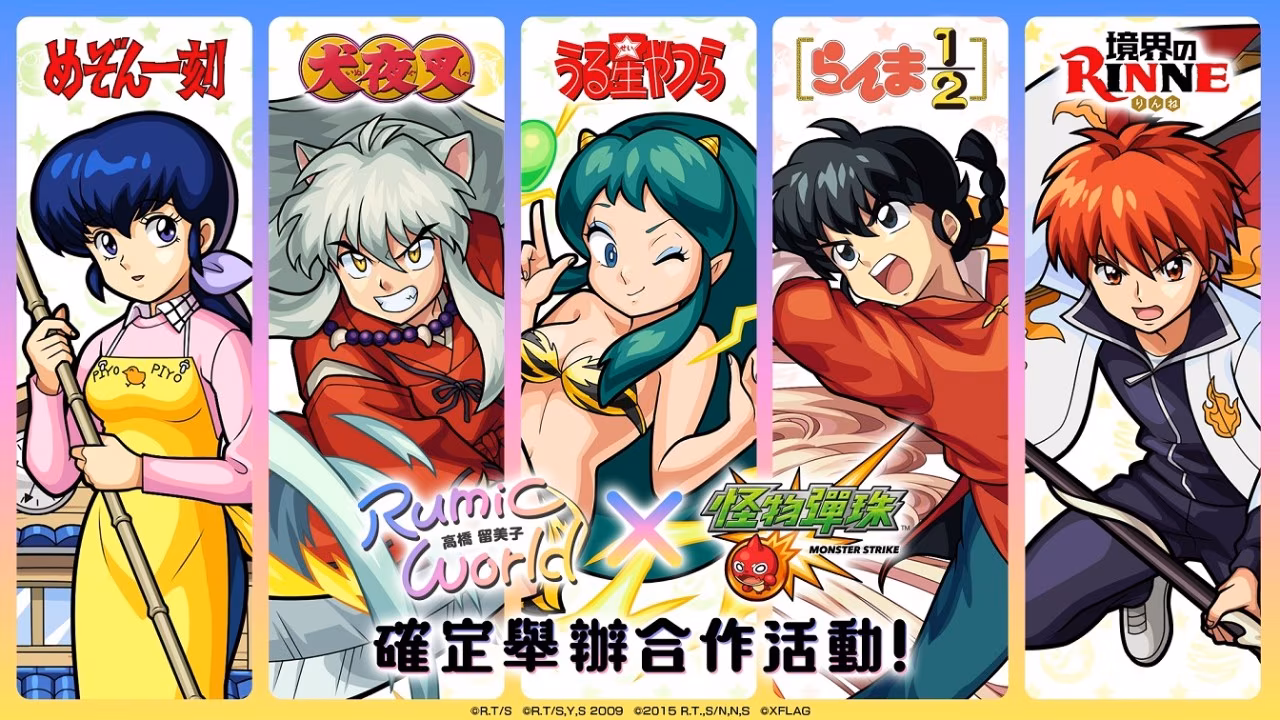 戰鬥 RPG 手機遊戲《怪物彈珠》與漫畫家「高橋留美子」老師《Rumic World》首次合作活動開跑,包括《亂馬1/2》、《犬夜叉》等 5 個作品中的角色們將於遊戲中登場。
