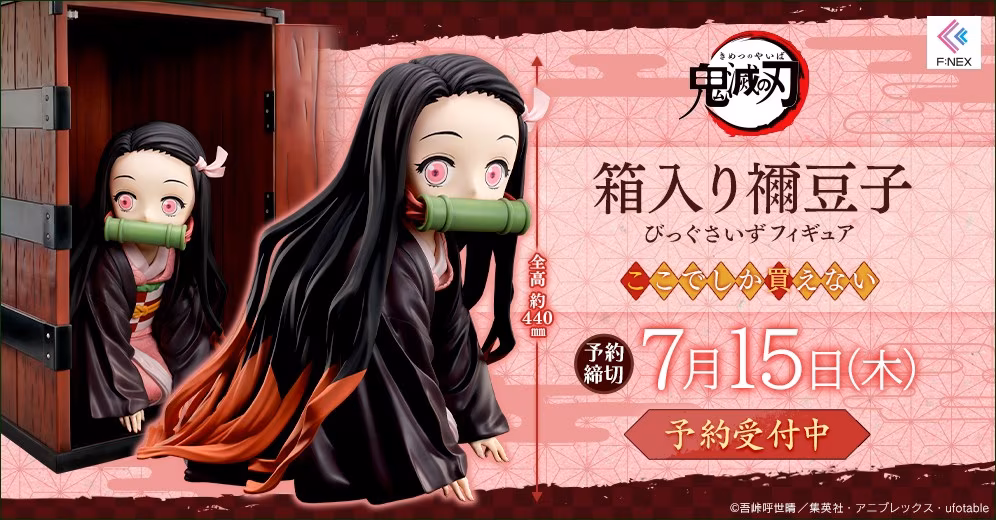 由 FuRyu 製作的「箱子裡的竈門禰豆子」1:1 尺寸模型已於 F:NEX 網站開放預購,這尊模型超過 44 公分,重現了妹妹從箱子裡出來的可愛模樣❤️