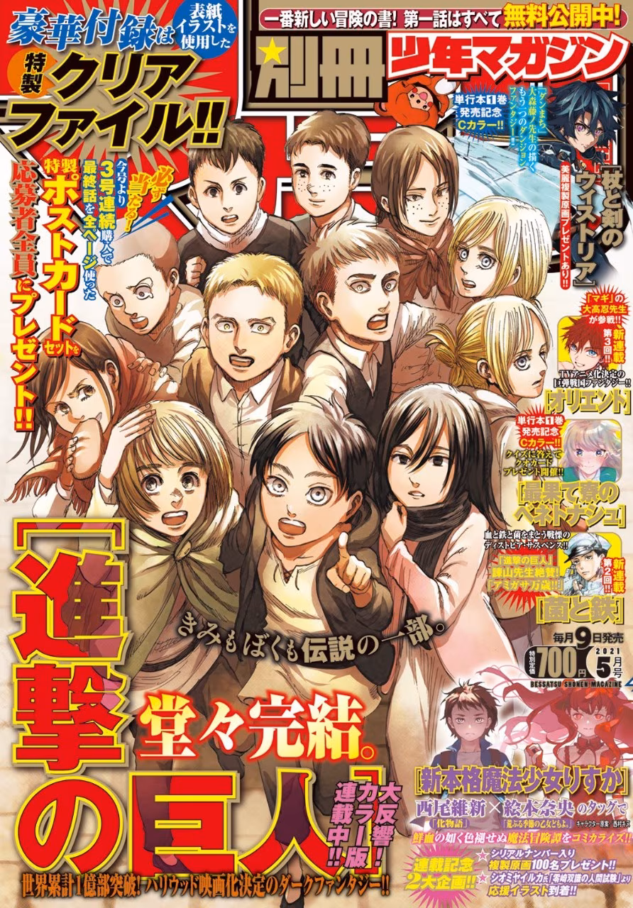 諫山創漫畫作品《進擊的巨人》最終回已於今(9)日發售的實體/電子版別冊少年 Magazine 5 月號刊登,結束 11 年 7 個月的連載。一覽日本推特趨勢,不外乎是滿滿的《進擊的巨人》關鍵字。