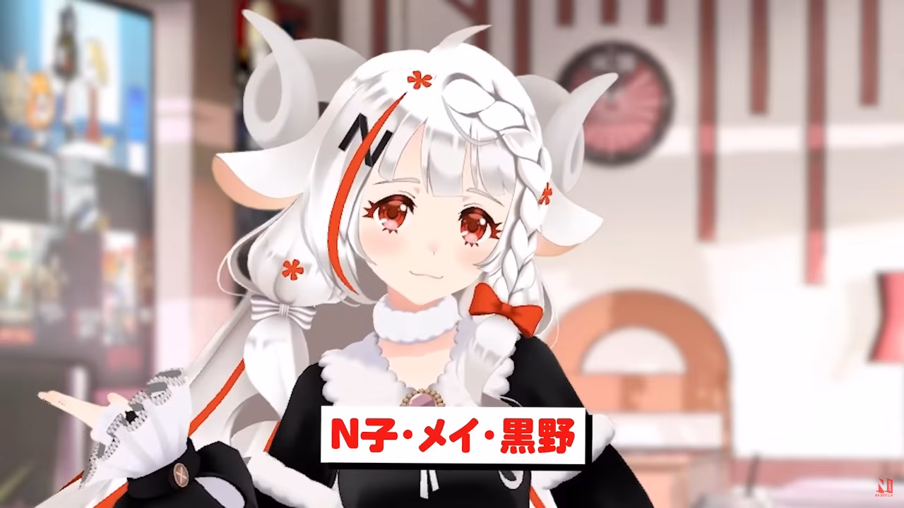 N子在今天第一次上傳了自我介紹的影片(可打開中文字幕),自稱是出生於加州的羊類生命體,年齡為 24 歲,繪師為フブキ,模型製作為 つみだんご。