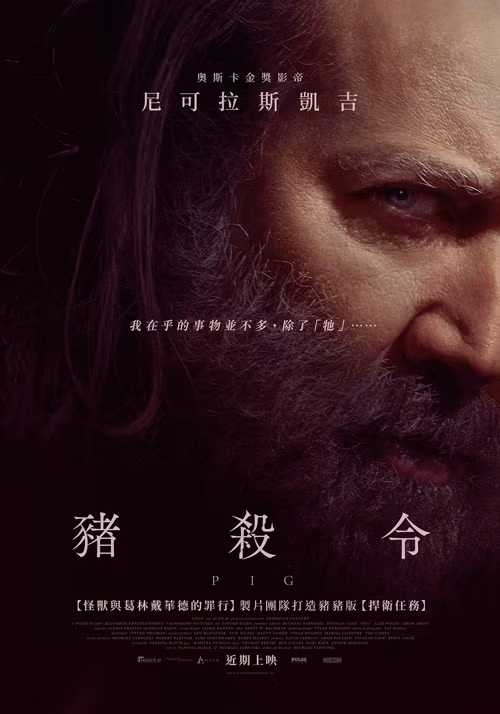 由 Nicolas Cage 主演、《怪獸與葛林戴華德的罪行》製片團隊打造、新銳導演 Michael Sarnoski 執導的《豬殺令》(Pig)以釋出中文版電影預告及海報。