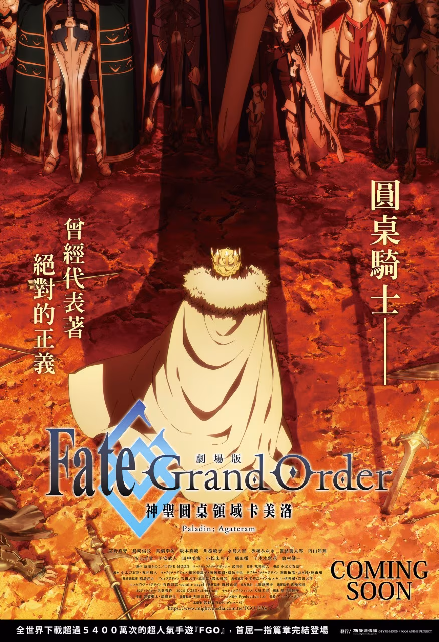 自同名手機遊戲改編的劇場版動畫《劇場版 Fate/Grand Order -神聖圓桌領域卡美洛-》後篇「Paladin; Agateram」將於台灣地區上映。