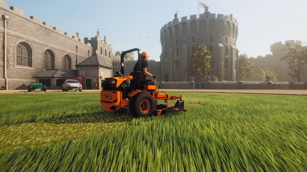 《草坪修剪模擬器》背景設定在美麗的英國鄉村小鎮,繁忙的住宅街道、廣闊的城堡地面、古樸的小屋綠地,以及大型馬術場都等著你去修剪。