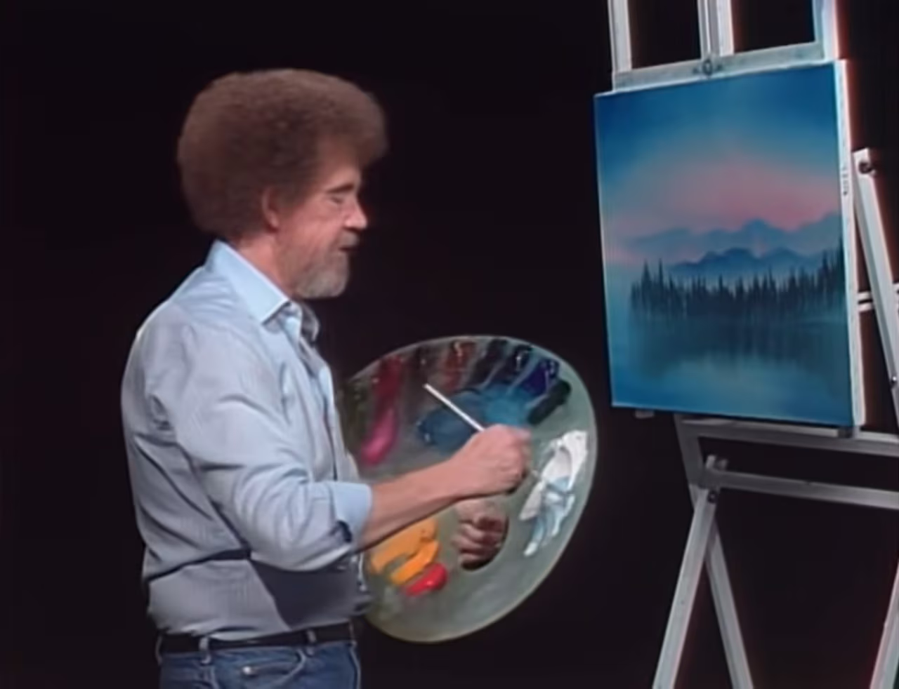 Bob Ross 是美國空軍出身,主持的繪畫節目《歡樂畫室》(The Joy of Painting)自 1983 年播映至 1994 年,得過三次艾美獎,風靡全球各地,近期還有推出 YouTube 和 Twitch 官方頻道。