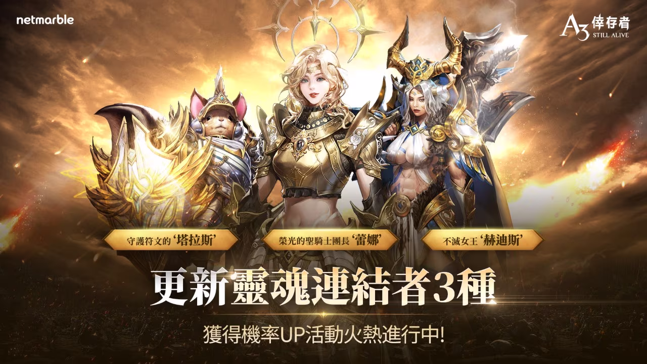 極限生存 MMORPG 手機遊戲《A3: STILL ALIVE 倖存者》推出 3 種嶄新靈魂連結者,還包含強化副本首領與遊戲內一系列活動,當玩家完成並擴充模式後即能蒐集多項獎勵。