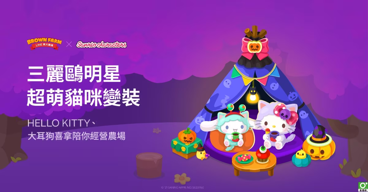 手機遊戲《LINE 熊大農場》與眾星雲集的「三麗鷗明星家族」再次展開合作!大眾熟悉的三麗鷗明星家族角色將穿著可愛的貓咪裝來到熊大農場歡慶萬聖節,合作期間遊戲內也同時推出了期間限定角色小夥伴與各式各樣的原創裝飾!