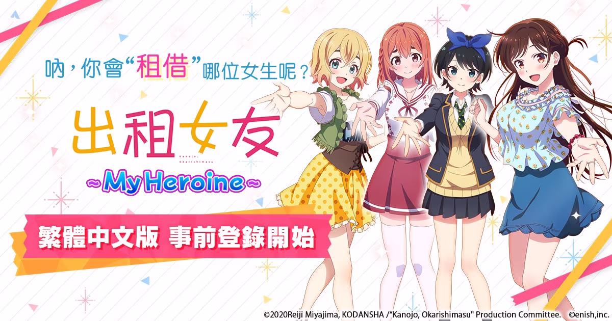 株式會社 enish 宣布 11 月 16 日正式展開動畫「出租女友」首款手遊《出租女友~My Heroine~》在台灣、香港、澳門的繁體中文版事前登錄。