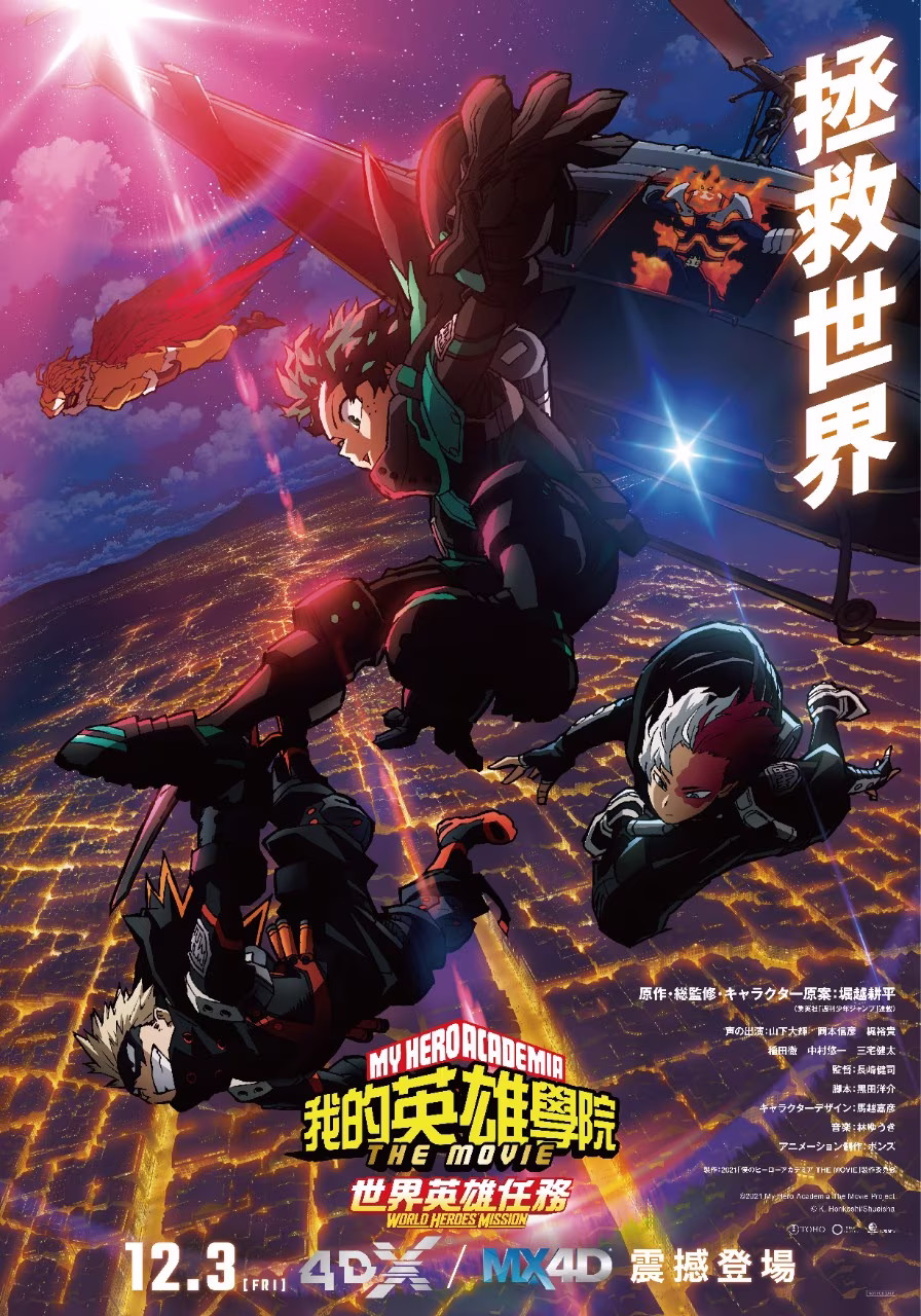 《我的英雄學院》劇場版第三彈《我的英雄學院劇場版:世界英雄任務》4DX、MX4D 版將於 12 月 3 日登上台灣大銀幕。