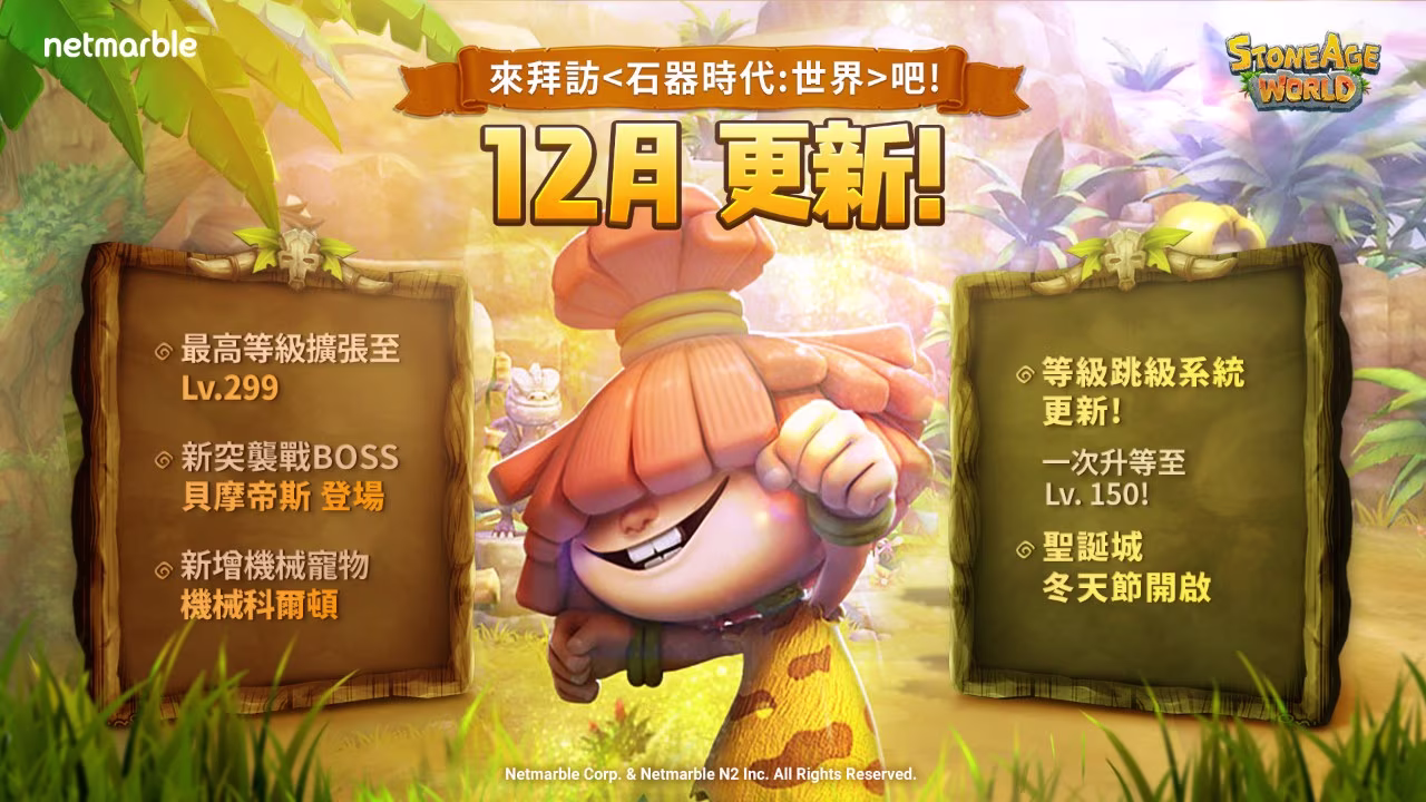 史前時代寵物蒐集 MMORPG 手遊《石器時代:世界》為迎接冬日推出大規模更新,眾多嶄新活動與馴獸師福利等,將使馴獸師們沉浸在史前假期的樂趣中。