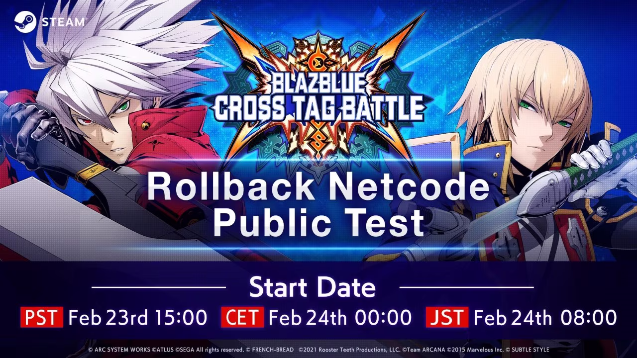 亞克系統亞洲分店宣布,Steam 版 / PS4 版《BLAZBLUE CROSS TAG BATTLE》(蒼翼默示錄:交叉組隊戰)的網路對戰功能,將於今年 4 月更新 Rollback Netcode 功能,且 Steam 版將從 2 月 24 日起進行公開測試。 Steam 版公開測試方面,Rollback Netcode 實裝版本具體開放時間將於 2 月 24 日 7:00 (GMT+8)開始。凡是購買本商品 Steam 版的玩家皆可參加本測試。