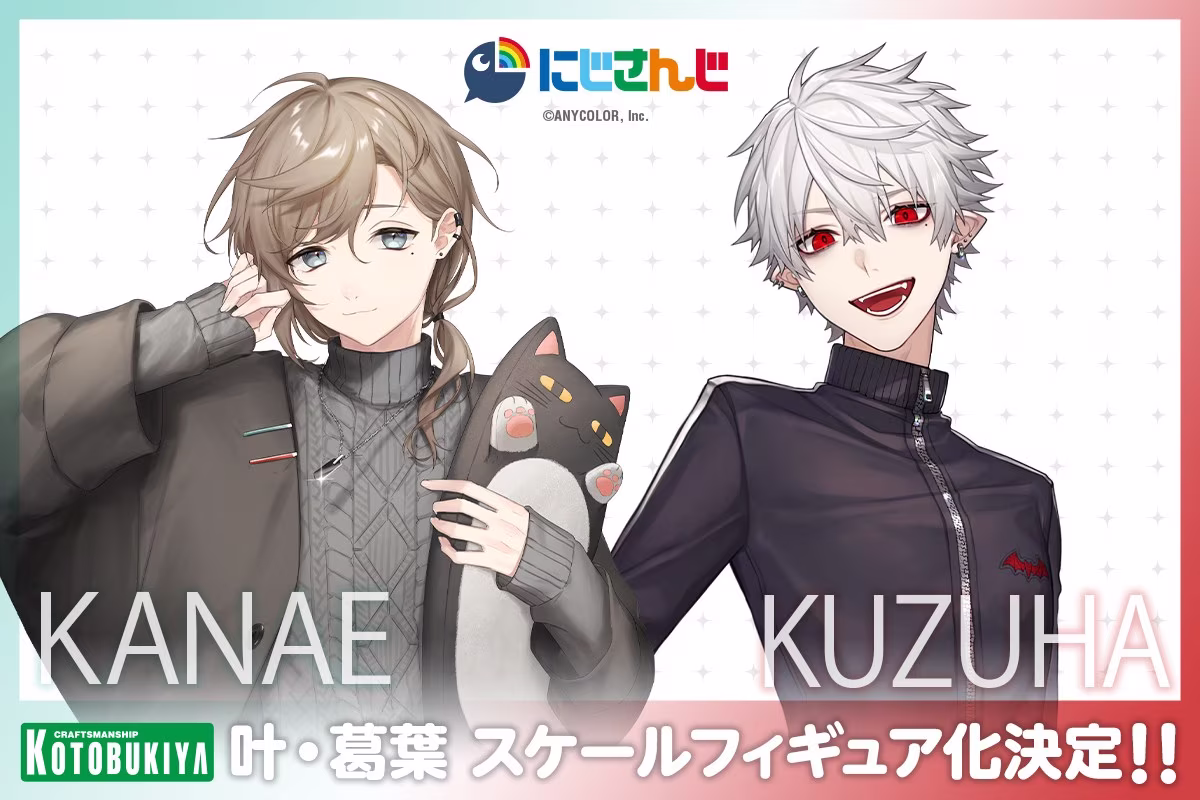 日本模型商壽屋コトブキヤ公開 NIJISANJI 所屬 Vtuber「叶」與「葛葉」兩人的比例模型原型,更多細節將於之後公開。