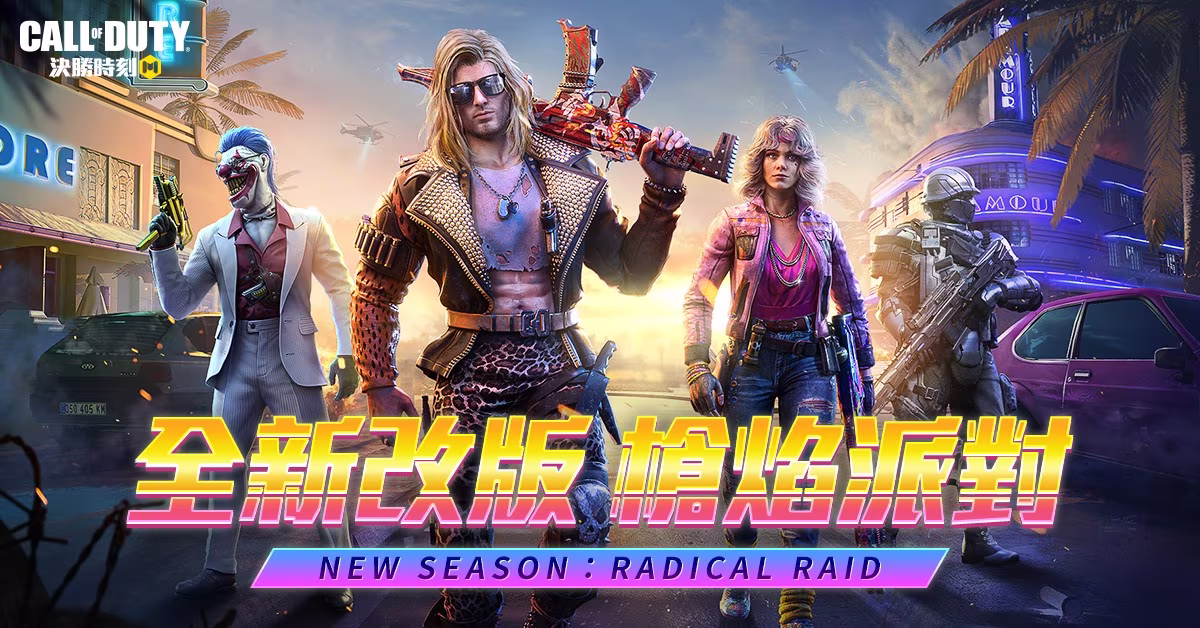 夕陽餘暉映照在邁阿密的沙灘上,一場熱鬧的夏日派對就此展開!Battle Pass「槍焰派對」(Radical Raid)推出四大史詩角色「殘虐小丑 - 秀場天王」、「海倫 - 閃耀舞池」、「鬥牛犬 - 星艦武士」和「基爾戈爾」;