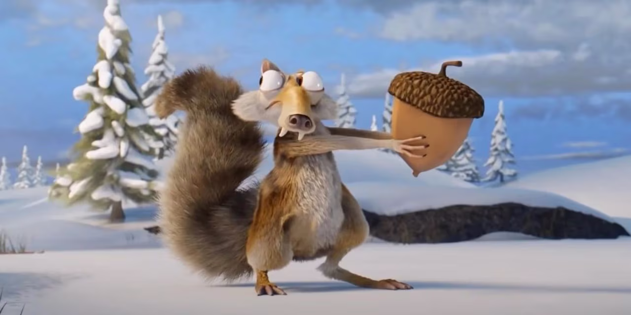 鼠奎特在劇中總是設法藏好牠的寶貝橡實,一藏就是 20 年(觀眾這邊的現實時間),這次牠選擇把橡實直接吃掉,最後丟下橡實蒂頭跑向別的地方。