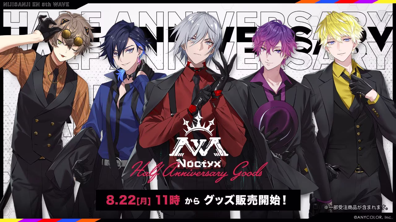 彩虹社 NIJISANJI EN 男子 VTuber 團體 Noctyx 慶祝出道半週年,官方宣佈「Noctyx Half Anniversary Goods」系列周邊商品將於 8 月 22 日發售。