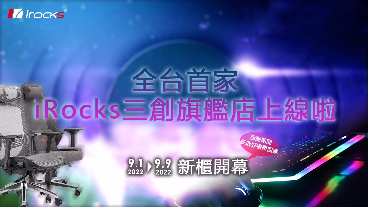 全台首間 iRocks 艾芮克旗艦門市專櫃,將於 9 月 1 日正式在台北三創生活園區 5 樓開幕,同步歡慶 iRocks 創立近 20 年,現場除了各式各樣鍵盤、滑鼠、電腦椅各種週邊展示一應俱全,提供舒適的選購空間。
