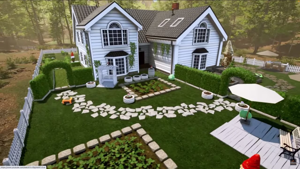 本作以物理引擎模擬一切真實情境,因此花園並不會就那樣長出來,而是得和除草機、水壺為伍,不幸中的萬幸大概就是你本體還是坐在電腦桌前,不必在外風吹日曬雨淋。