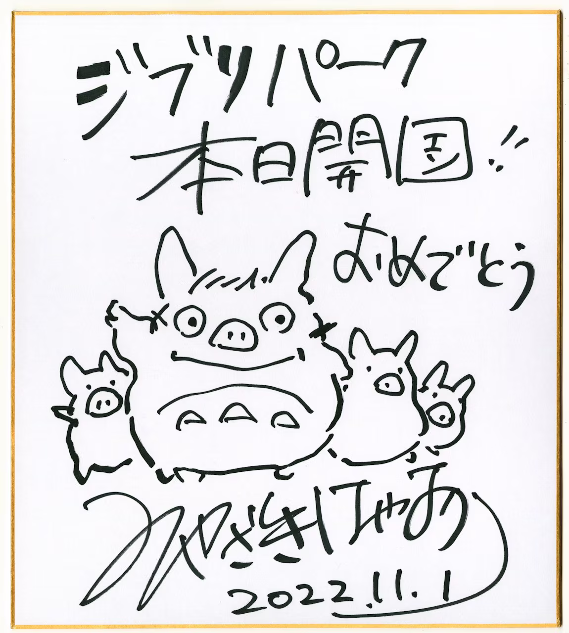 位於日本愛知縣愛.地球博記念公園,以重現吉卜力工作室作品的主題樂園「吉卜力主題公園」(ジブリパーク)於 11 月 1 日開幕。為紀念主題公園開幕,官方邀請宮崎駿繪製簽名板,但圖案與粉絲熟知的《龍貓》有點落差,引起熱議。