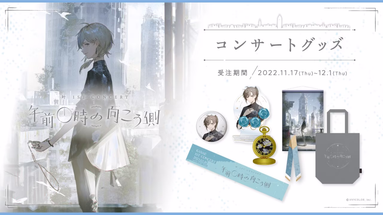 VTuber 品牌にじさんじ(NIJISANJI,彩虹社)旗下 Liver 叶宣布將於 2023 年 3 月舉行首場個人演唱會「午前0時の向こう側」,同時今(17)日也公布演唱會周邊開放販售,叶え隊準備好錢包了嗎!