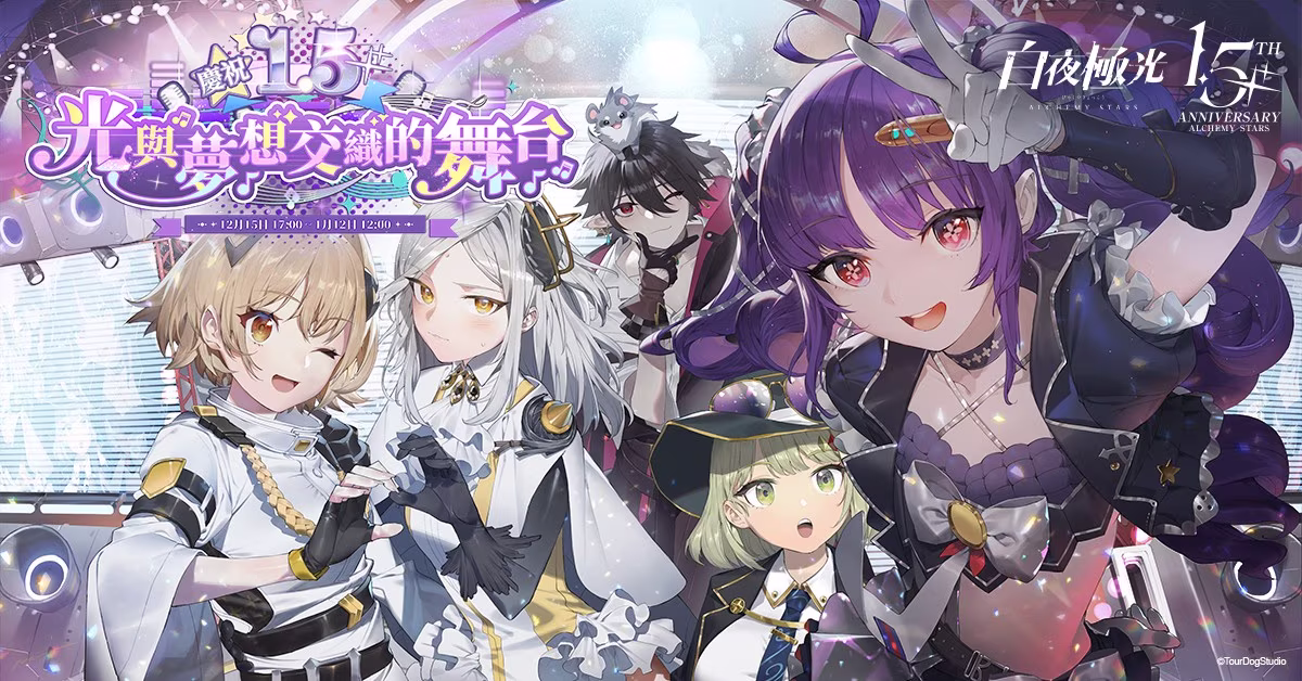 由 TourDogStudio 研發,Gamamobi 遊戲平台代理的超美學連線戰略 RPG 手遊《白夜極光》,在大家的支持下即將迎來 1.5 周年,12 月 1 日搶先釋出即將開啟全新玩法、1.5 週年慶祝紀念活動及偶像舞台票選活動揭曉預告。