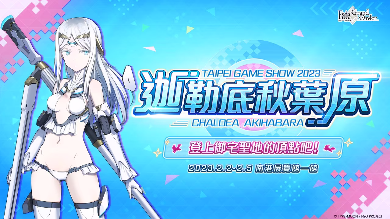 日本超人氣手遊《Fate/Grand Order》繁中版(命運-冠位指定,以下簡稱《FGO》繁中版)將參加 2023 台北國際電玩展(2 月 2 日至 5 日)。為期四天的展會中,官方將打造專屬於御主的「迦勒底秋葉原 CHALDEA AKIHABARA」。