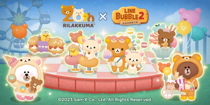 LINE GAME 旗下消除泡泡益智手遊《LINE Bubble 2》,2 月 15 日宣布與今年迎接 20 週年的人氣角色「拉拉熊」合作活動正式開跑,「拉拉熊」是由「San-X」所推出的創作,其中的「拉拉熊」、「小白熊」、「小黃雞」和「茶小熊」都將化身限定寵物在遊戲中登場。