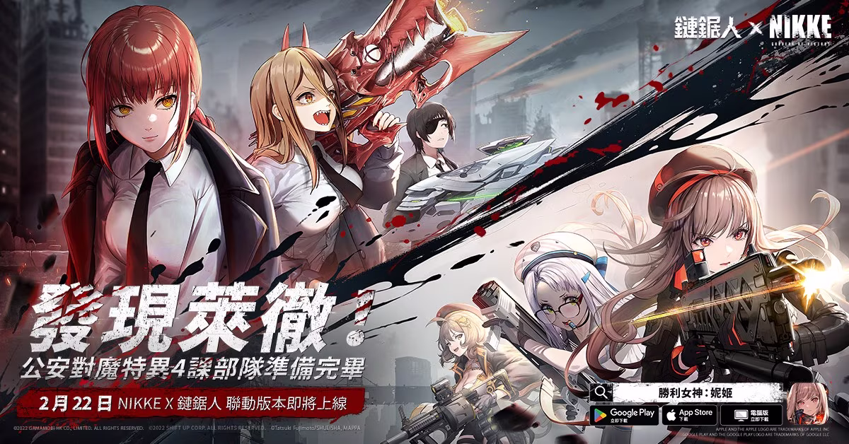 由 SHIFT UP 與 Level Infinite 聯手開發、Gamamobi 代理的美少女槍戰動作手遊《勝利女神:妮姬》,2 月 15 日宣布與暢銷動漫《鏈鋸人》展開合作,並正式開放跨平台 PC 版本。