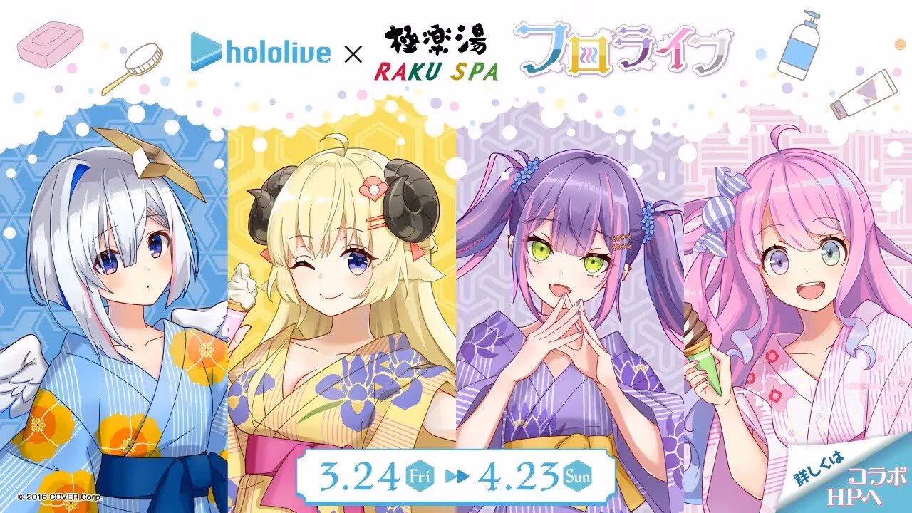 hololive X 極樂湯的活動從今(24)日起至 4 月 23 日止,除了餐點外也會販賣限定周邊,因此近期有日本旅遊計畫的粉絲不妨可以考慮考慮。