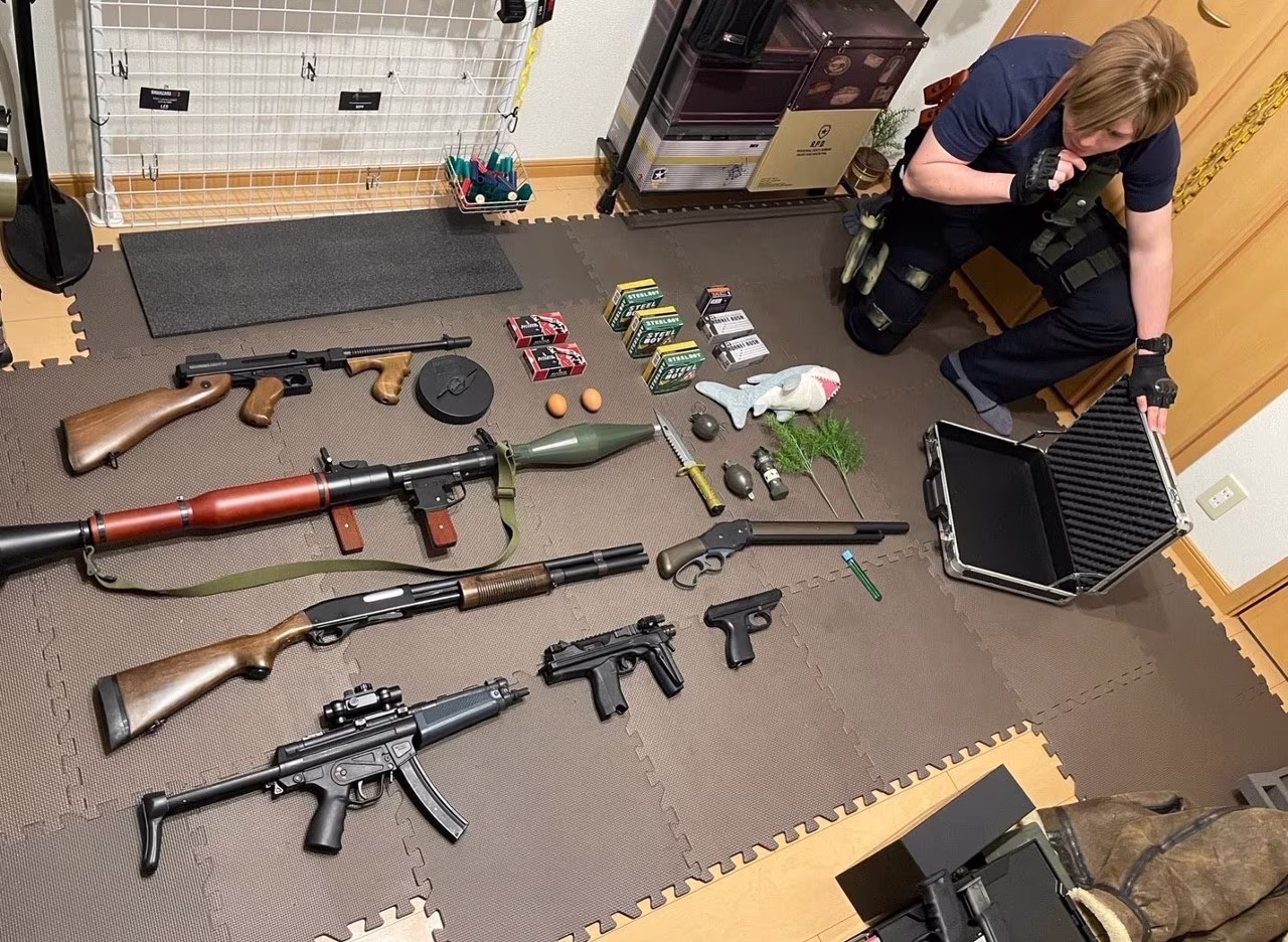 殊不知在找來實物之後,光是照著公事包收納方式擺放槍枝、道具就占掉了整個房間,至少需要半個人高的公事包才塞得下全部物品。然而世界上肯定沒有這麼大的公事包,可見遊戲內可能是四次元公事包、或是里昂會空間魔術。
