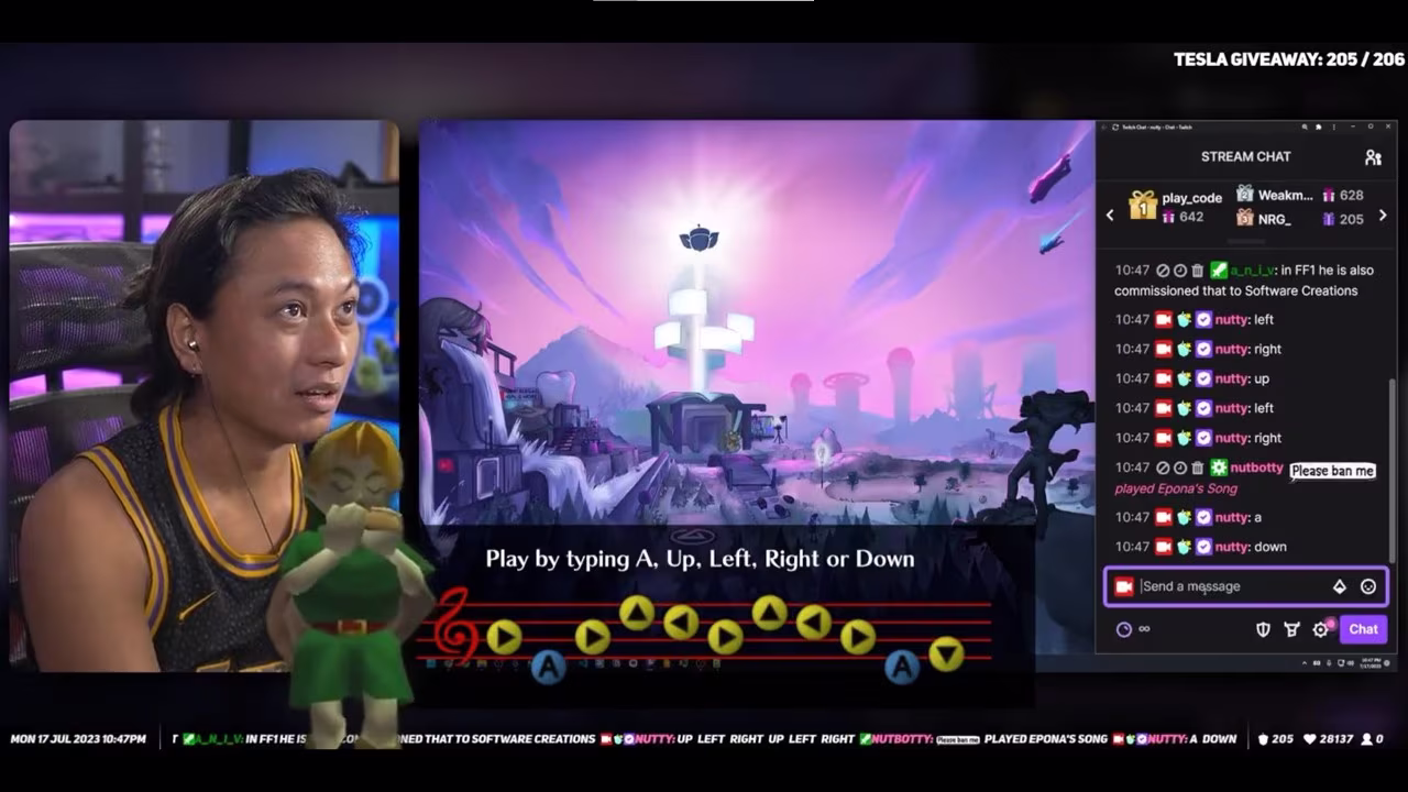 國外實況主 nutty 近日自製了一套《薩爾達傳說 時之笛》Twitch 互動功能,觀眾在聊天室輸入 N64 版對應樂曲指令後,實況畫面裡的時之笛林克就會吹奏遊戲內的樂曲。
