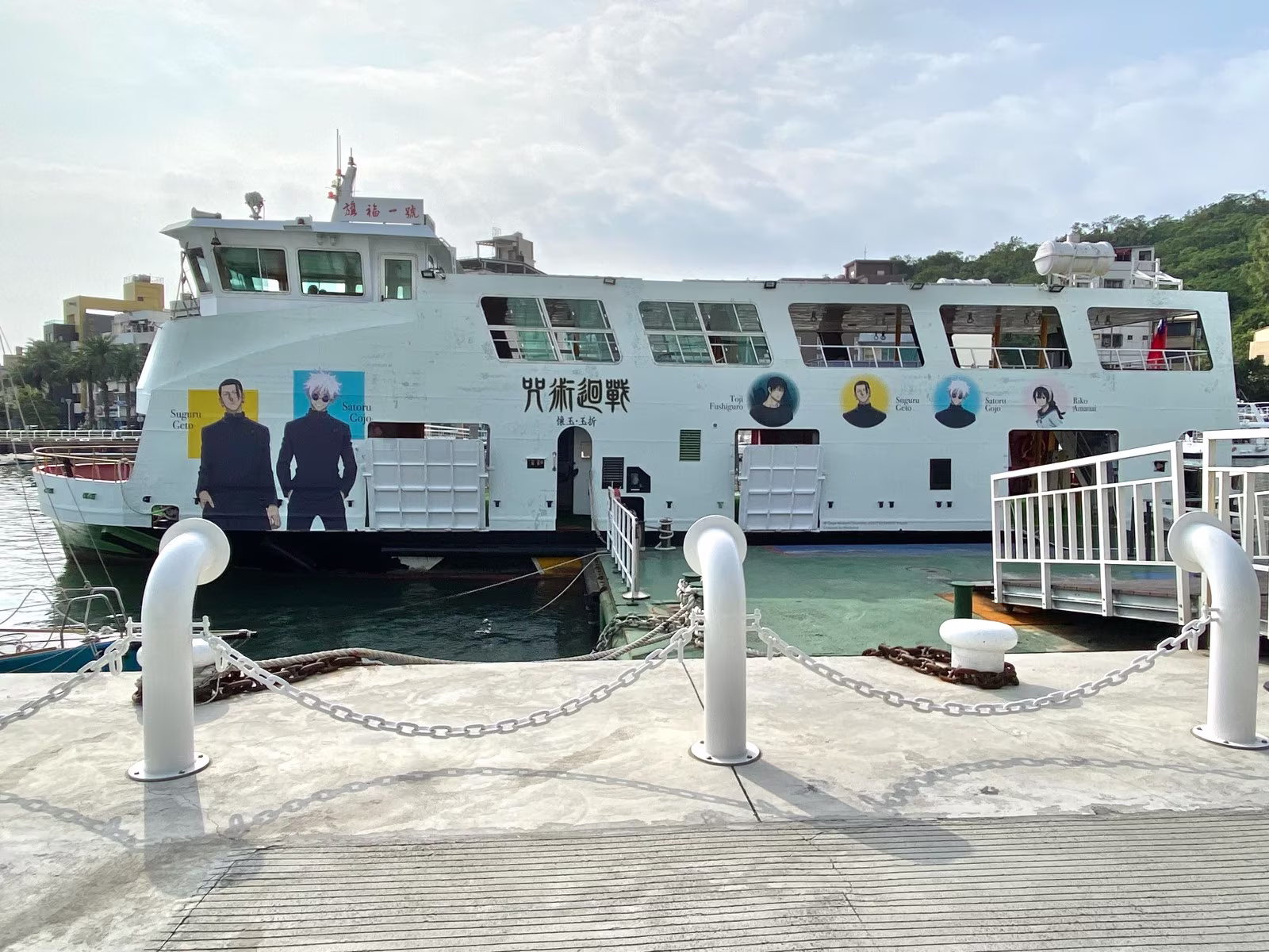由羚邦(Medialink)代理的人氣動畫《咒術迴戰》與高雄市輪船公司渡輪「旗福一號」推出聯名外觀,於今(12)日下午亮相登場。以《咒術迴戰》主角群及黑白兩色《懷玉‧玉折》與《澀谷事變》兩大主題的醒目對比色彩,現身海上巴士航線,成為首艘日本動漫聯名渡輪。
