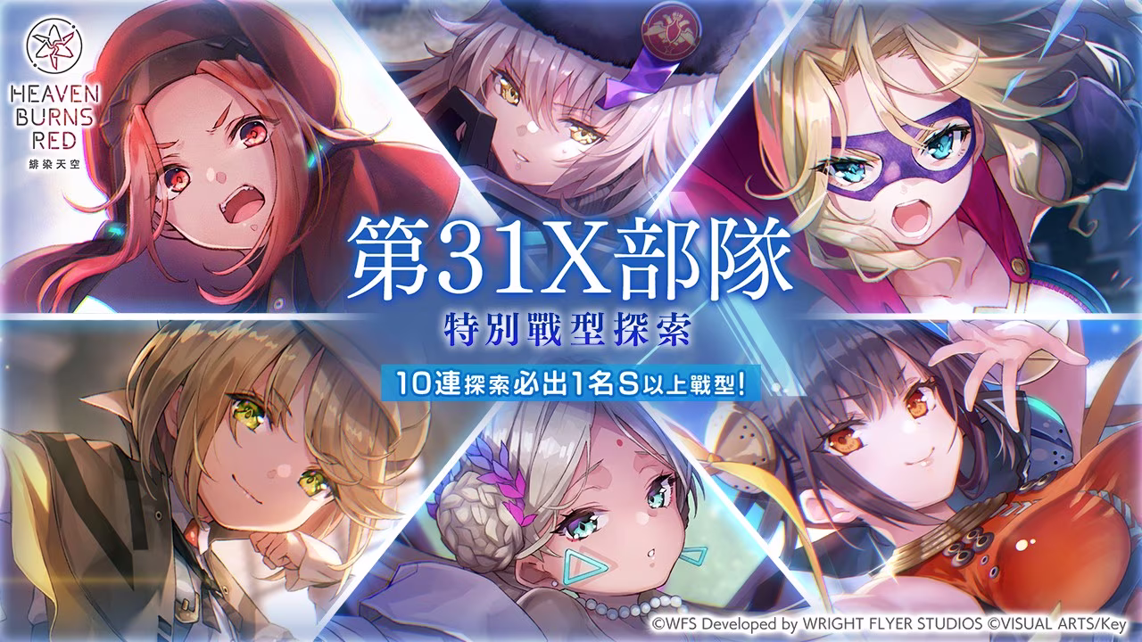 《緋染天空 Heaven Burns Red》第 31X 部隊特別戰型探索已經於今日推出,詳細更新內容與卡池情報可至官方網站查詢。