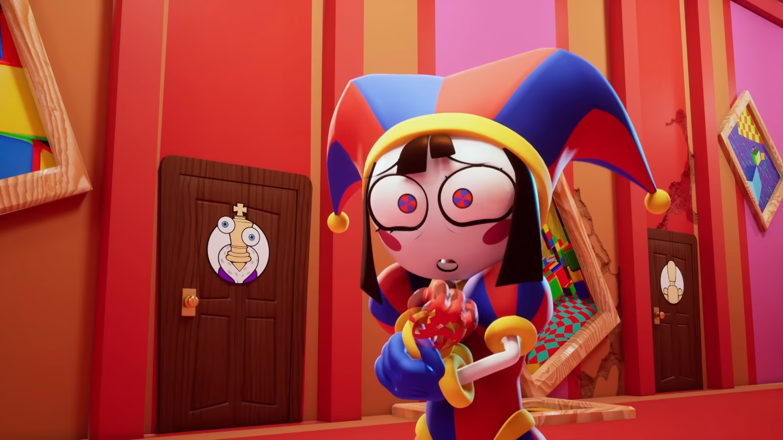 故事背景在一個由人工智慧「Caine」控制的虛擬世界(馬戲團長),失去記憶的女主角「Pomni」迷失在詭異空間,其他人與她一樣被困在玩具般的身體中,第一集講述焦慮的 Pomni 與兔子 Jax、鈕扣眼毛偶 Ragatha…等夥伴相遇,設法適應瘋狂而神祕的異世界。